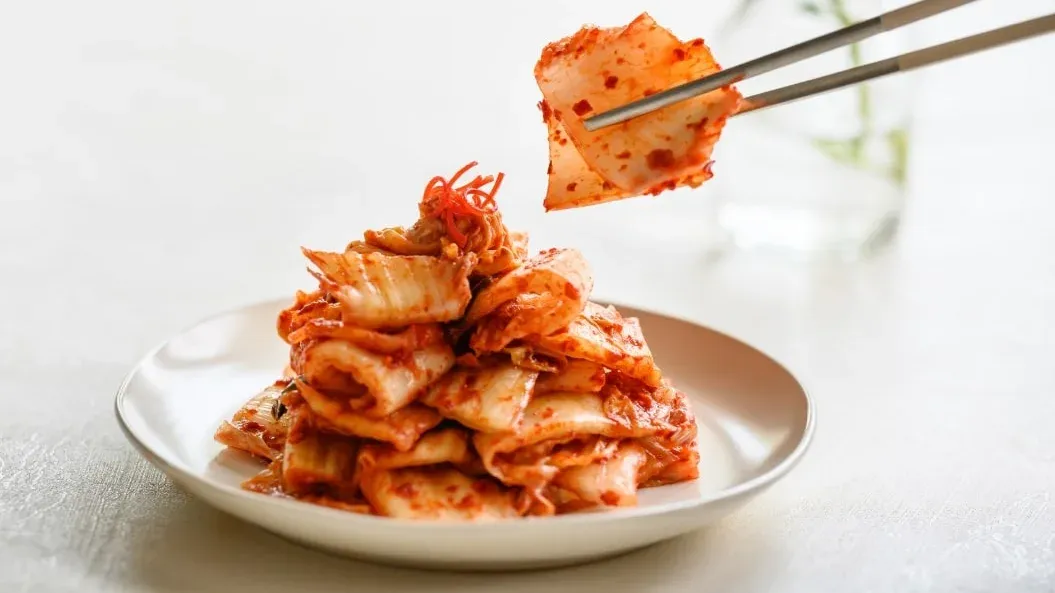 O kimchi, a icónica couve fermentada da Coreia, combina na perfeição com arroz, noodles ou salteados de legumes, acrescentando uma profundidade azeda e picante ao prato.