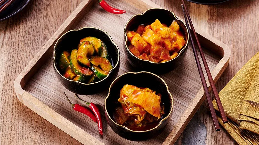 E com boas razões: A cozinha coreana é considerada saudável e equilibrada. Uma das caraterísticas da cozinha coreana é o chamado “banchan” - vários pequenos pratos de acompanhamento frequentemente servidos gratuitamente nos restaurantes, juntamente com o prato principal. Estes pratos incluem muitas vezes legumes temperados de forma deliciosa. E o que é que não pode faltar? Kimchi, claro!