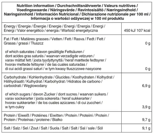 O nosso Molho de soja fermentado naturalmente tem os seguintes valores nutritivos por 100 ml: