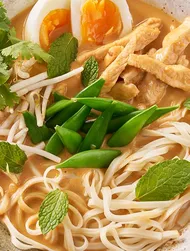 Almôndegas: refogue a cebola num pouco de óleo em lume brando durante 2-3 minutos. Misture a cebola com a carne picada, os ovos e o pão ralado e tempere com sal. Forme bolas de cerca de 25 g com as mãos húmidas e frite-as de todos os lados num pouco de óleo, em lume médio, durante 2-3 minutos. Retire as almôndegas da frigideira e deglaceie os sucos com o molho de soja sem glúten Kikkoman. Adicione as natas e deixe ferver. Engrosse com farinha de milho. Adicione as almôndegas e deixe-as cozer em lume brando no molho durante cerca de 10 minutos.