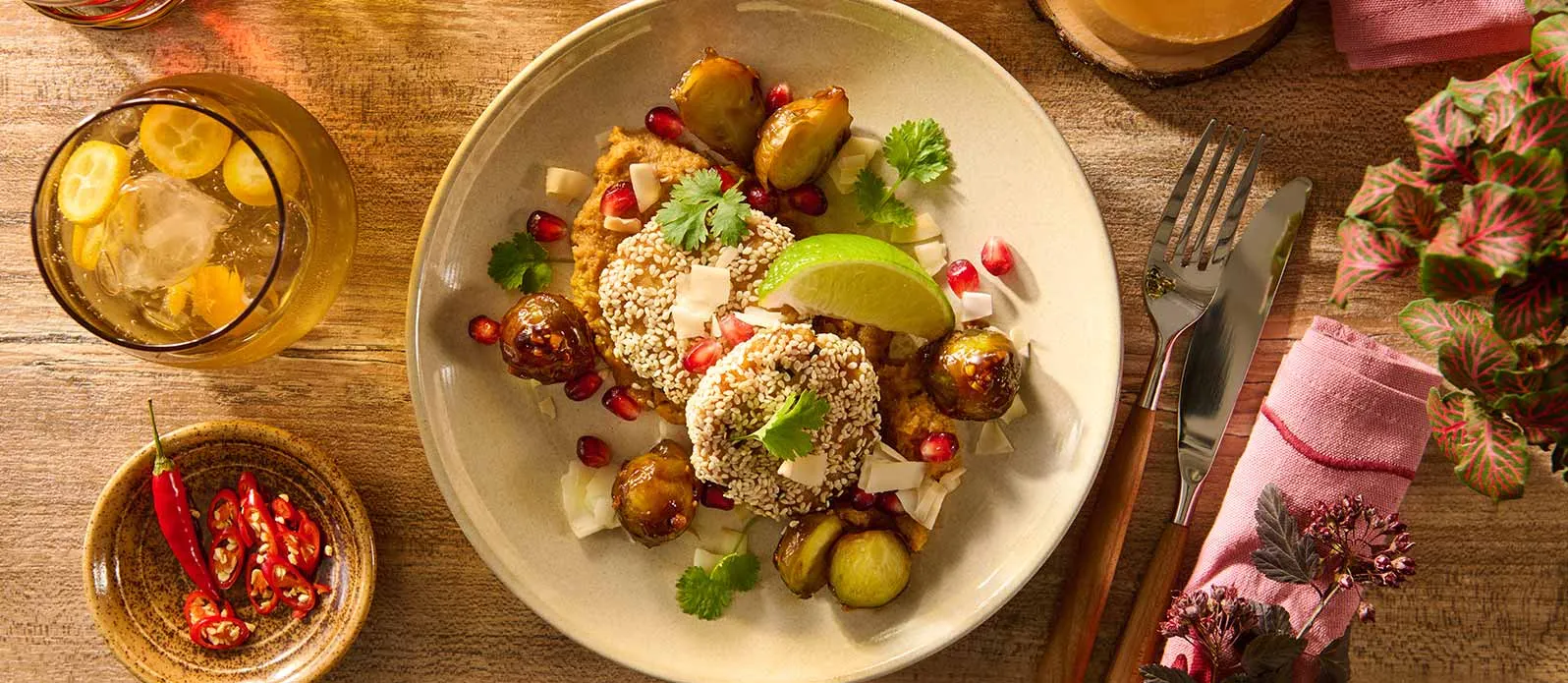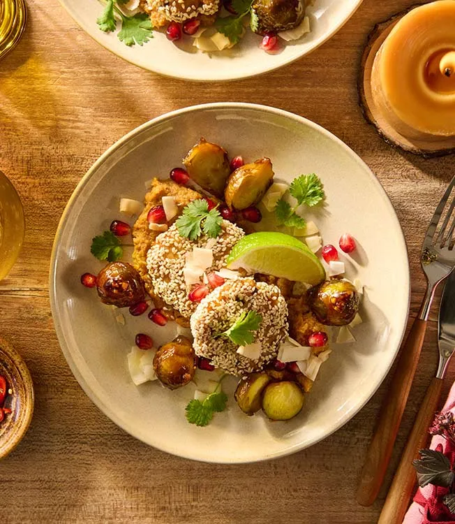Este prato tem tudo o que é preciso para se tornar num clássico instantâneo da sua ementa: bolinhos de peixe com puré de couve-flor assado no forno encorpados com o tempero Kikkoman Mirin-Style e o molho de soja Kikkoman. O destaque vai para as couves-de-bruxelas assadas picantes, temperadas com o molho Wok Kikkoman - Teriyaki.