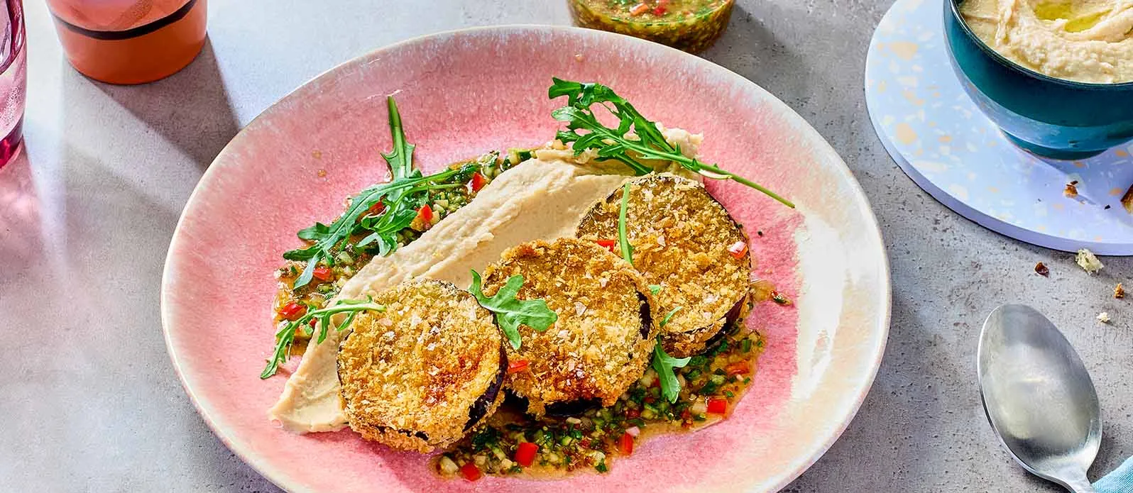 Transformámos este clássico italiano num prato de fusão vegetariano: piccata de beringela com um vinagrete de pepino Ponzu picante. O Kikkoman Ponzu Limão assegura um equilíbrio perfeito de sabores.