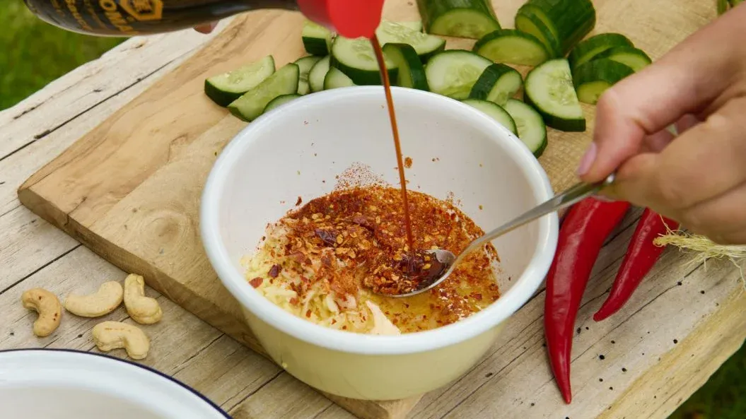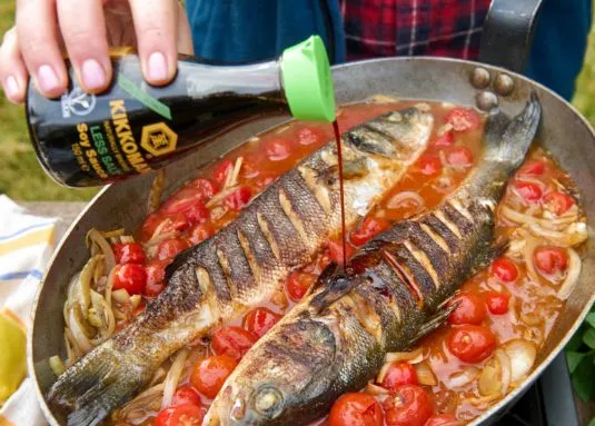 - O molho de soja Kikkoman acrescenta profundidade, umami e um sabor salgado e ligeiramente doce