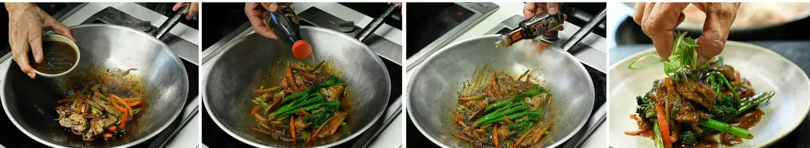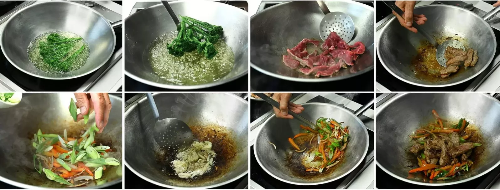 Qual é o segredo dos salteados? Alta temperatura! Sela os alimentos imediatamente e conserva os seus sumos naturais. O que mais é importante? Tempo! Dois ou cinco minutos é definitivamente tempo suficiente para conseguir legumes brilhantes e estaladiços e ter a carne maravilhosamente dourada e suculenta. Se seguir estas duas regras e servir a comida imediatamente, poderá alcançar o efeito “Wok hei”. Esta técnica da “Respiração do Wok” irá trazer-lhe comida vibrante e fresca, mas com um aroma tostado especial. E tudo se deve aos sabores concentrados e fumados do wok quente. Na altura de servir, uns pingos do seu tempero favorito vão garantir um banquete de Wok harmonioso.