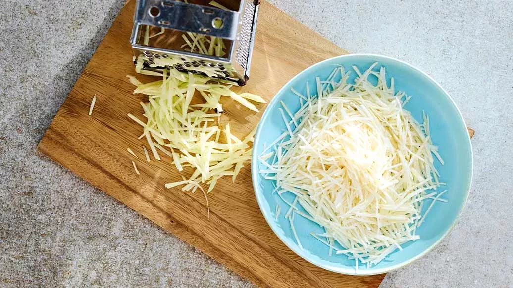 300 g de aipo-rábano – ½ maçã Granny Smith – 1 pitada de sal