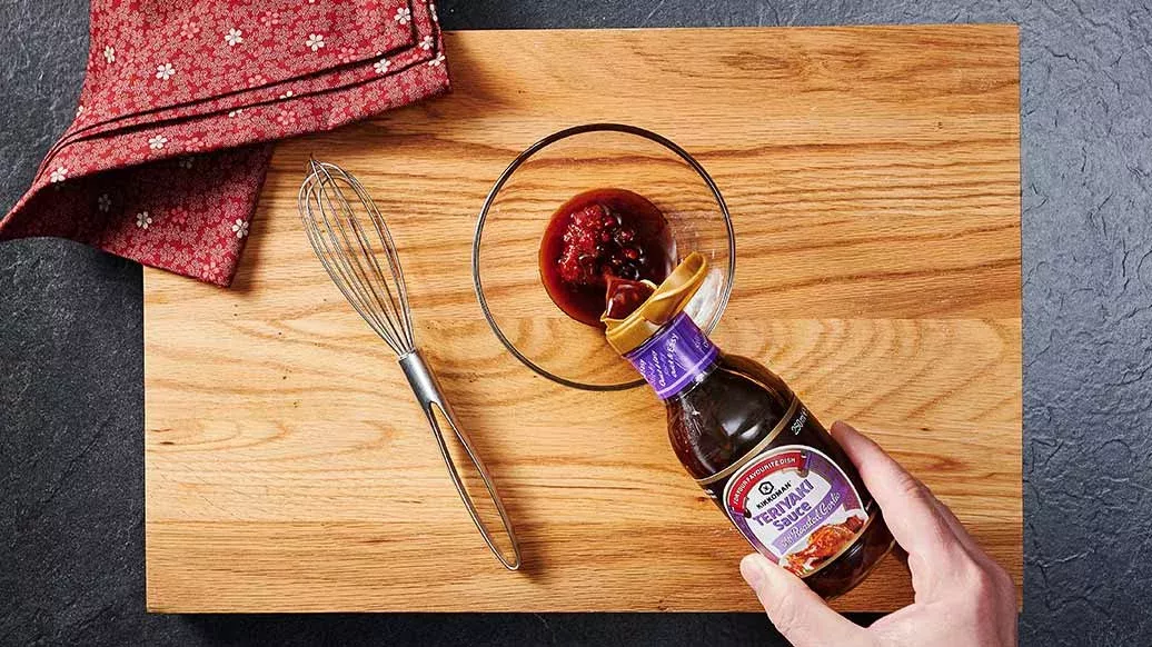 Misturar Sambal Oelek e Kikkoman Marinada.