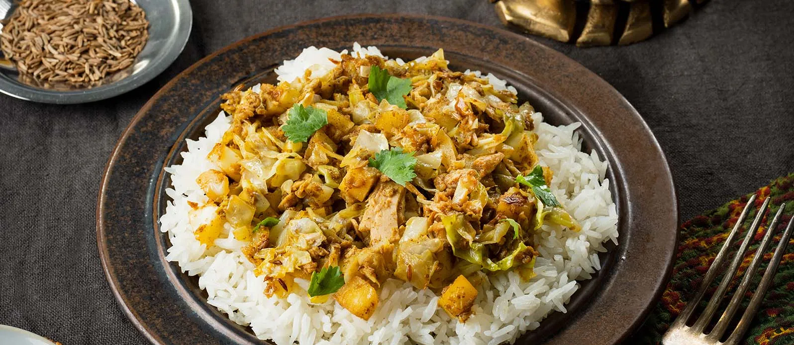 Pode desfrutar deste prato com arroz ou naan (pão indiano).