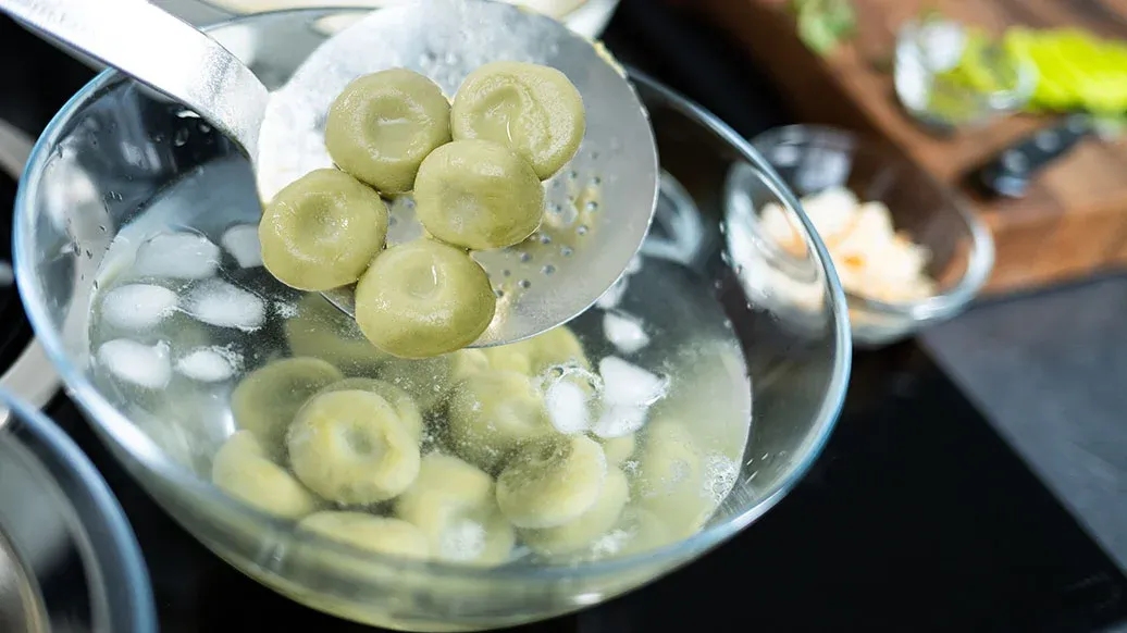Cozinhe os dumplings em água a ferver abundante durante 5 a 7 minutos (ver dica).