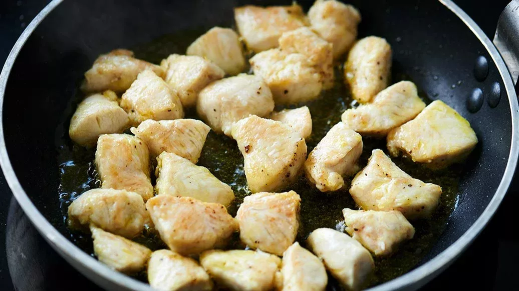 300 g de peito de frango – 1 colheres de sopa Kikkoman Molho de Soja Fermentado Naturalmente – 4 colheres de sopa de fécula de batata – 4 colheres de sopa de óleo alimentar