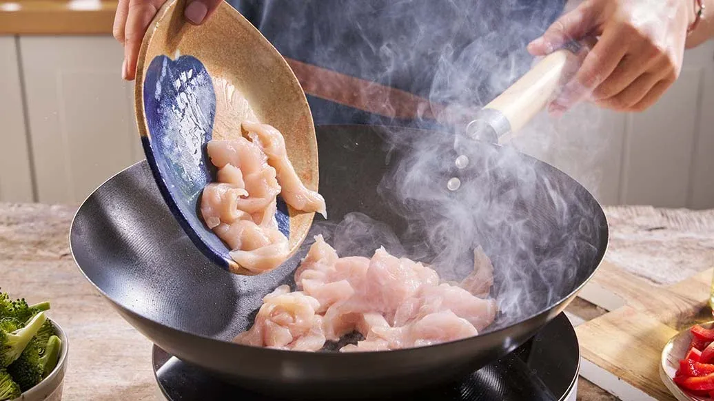 Para obter um frango perfeitamente dourado, cozinhe em pequenas porções e evite mexer durante os primeiros 2 minutos.