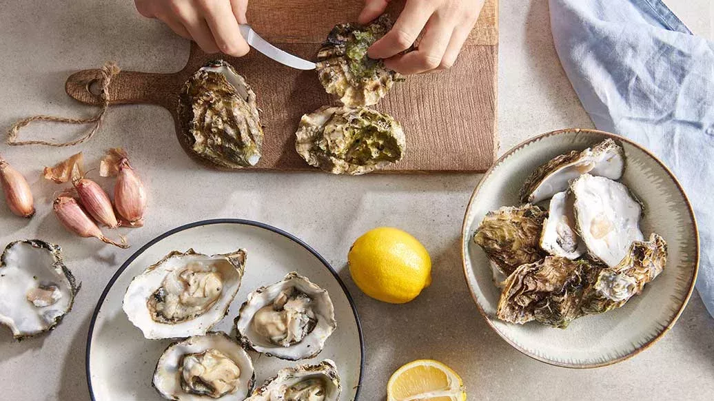 Abra as ostras com uma faca para ostras ou peça ao seu peixeiro para o fazer. Tenha muito cuidado e atenção à sua mão.