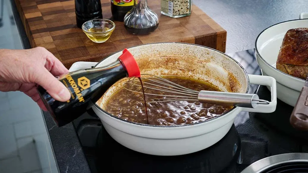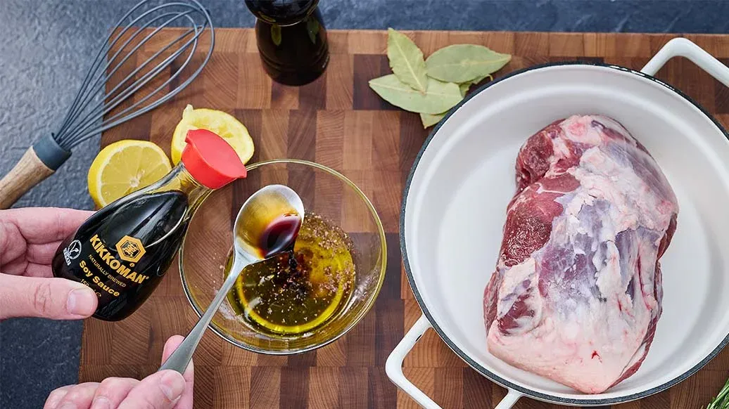 Uma versão distinta do clássico turco Kuzu Tandir — borrego assado lentamente, marinado com Molho de Soja Kikkoman, limão e ervas para obter um molho rico em umami. Servido com pilaf de orzo aromático e legumes tenros, é uma refeição reconfortante para o inverno.