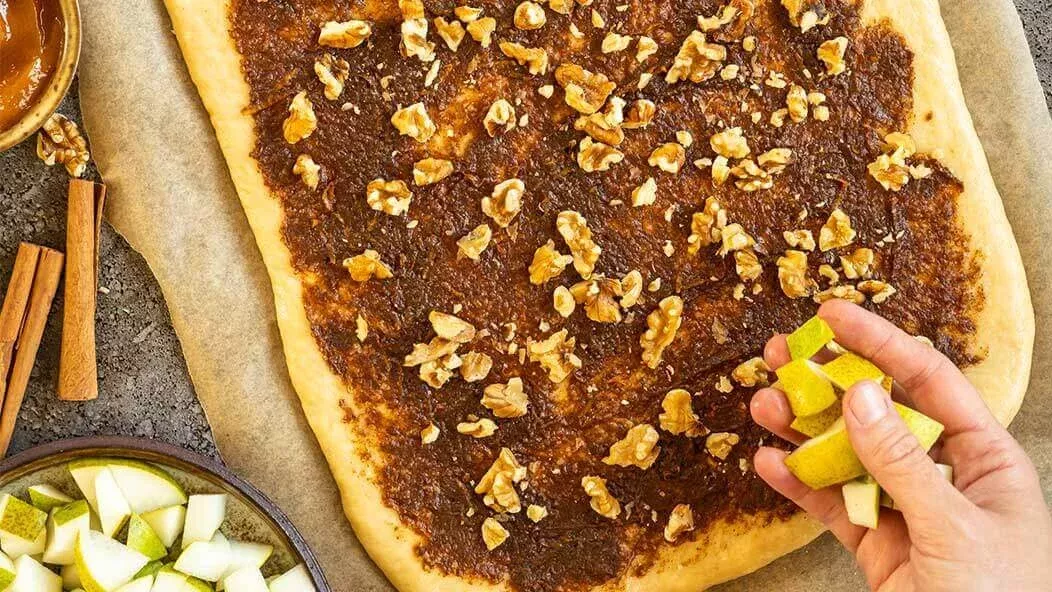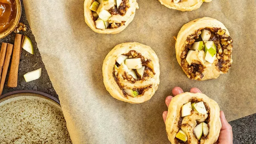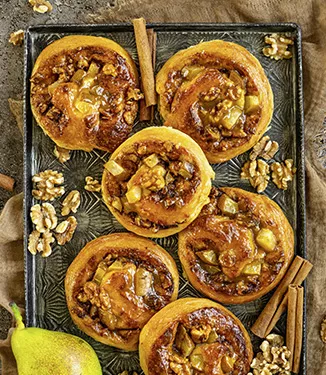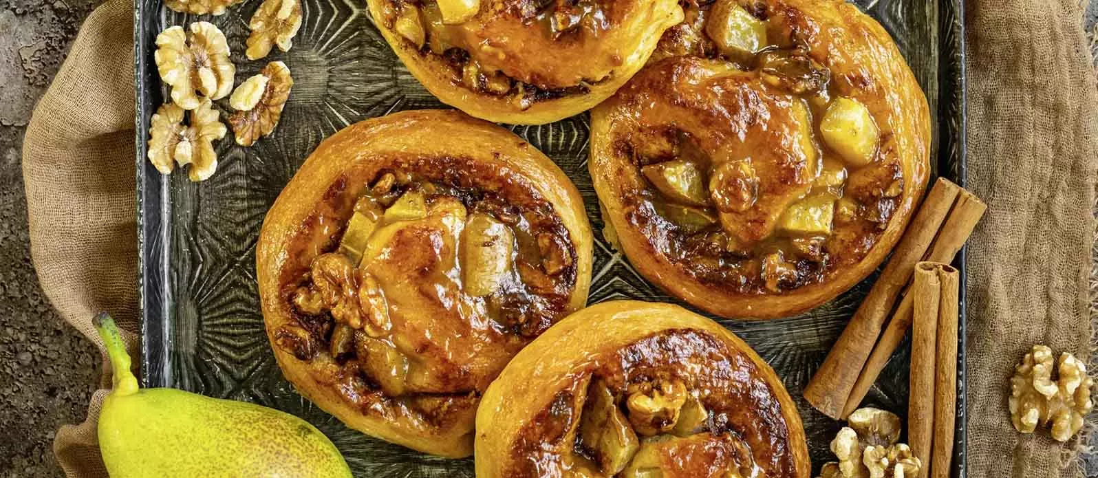 Rolos de canela com pera e nozes