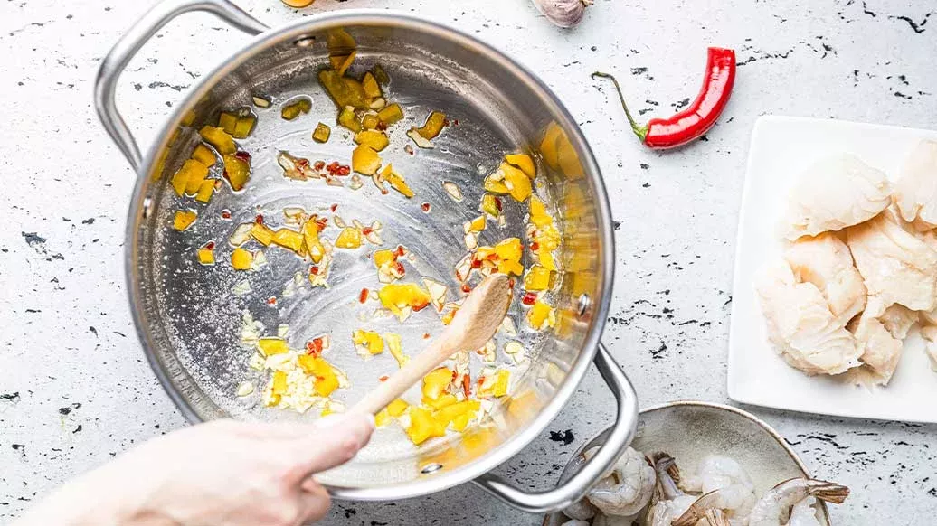 Sopa de peixe com camarão e bacalhau
