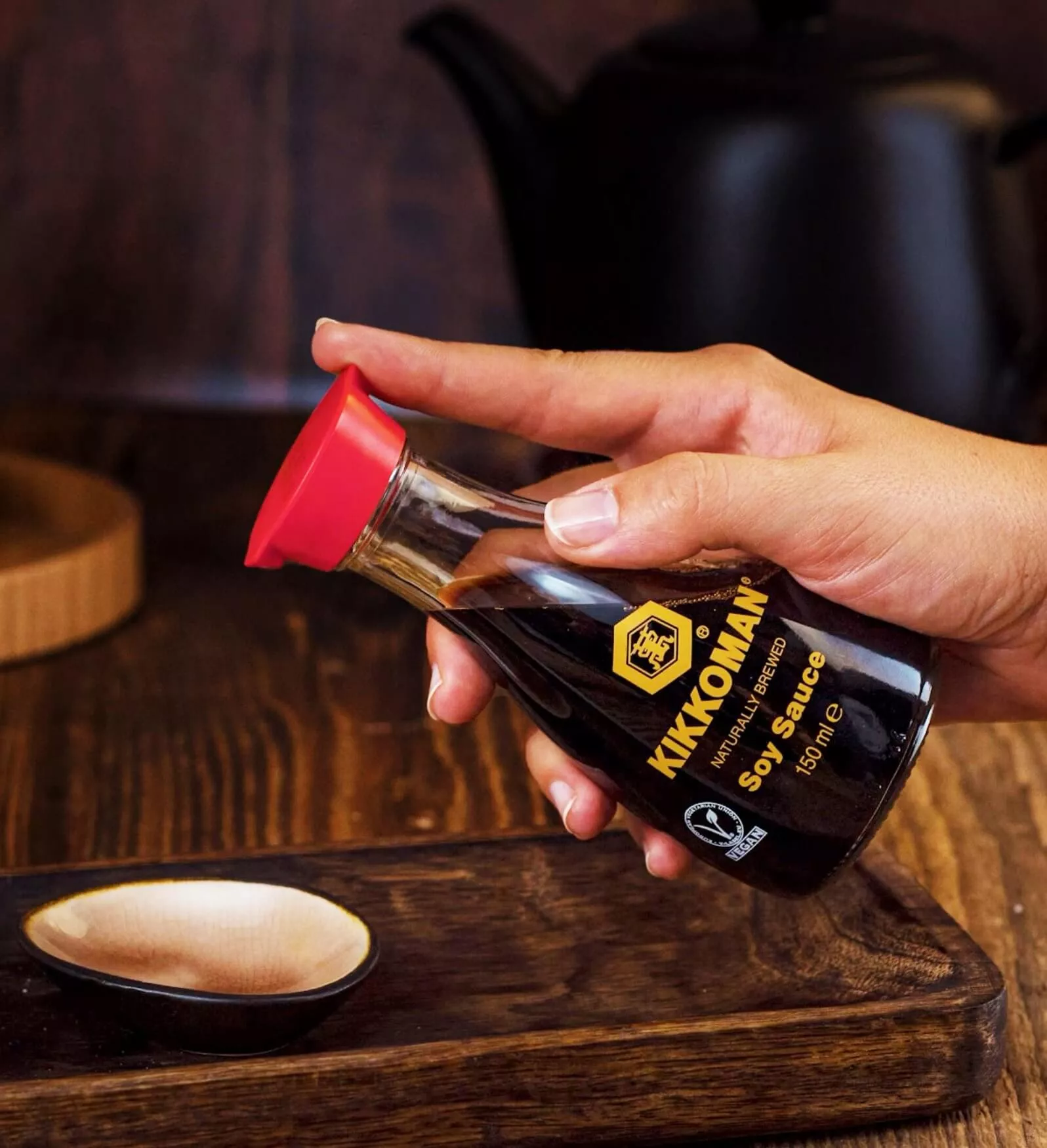 A garrafa icónica, concebida por Kenji Ekuan, também ajudou a que a Kikkoman se tornasse numa marca facilmente reconhecível e inequivoca. O seu formato é único e reconhecido por todo o mundo.